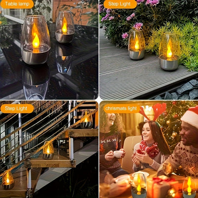 1 Stück Solarbetriebene Outdoor/Indoor Kerzenleuchte mit 600mAh Akku & Flamm-Effekt - flammenlose LED-Laterne, langlebiges Kunststoffgehäuse, einfache Bedienung per Knopfdruck für Garten, Treppen, Partys, Weihnachts- Halloween-Dekorationen