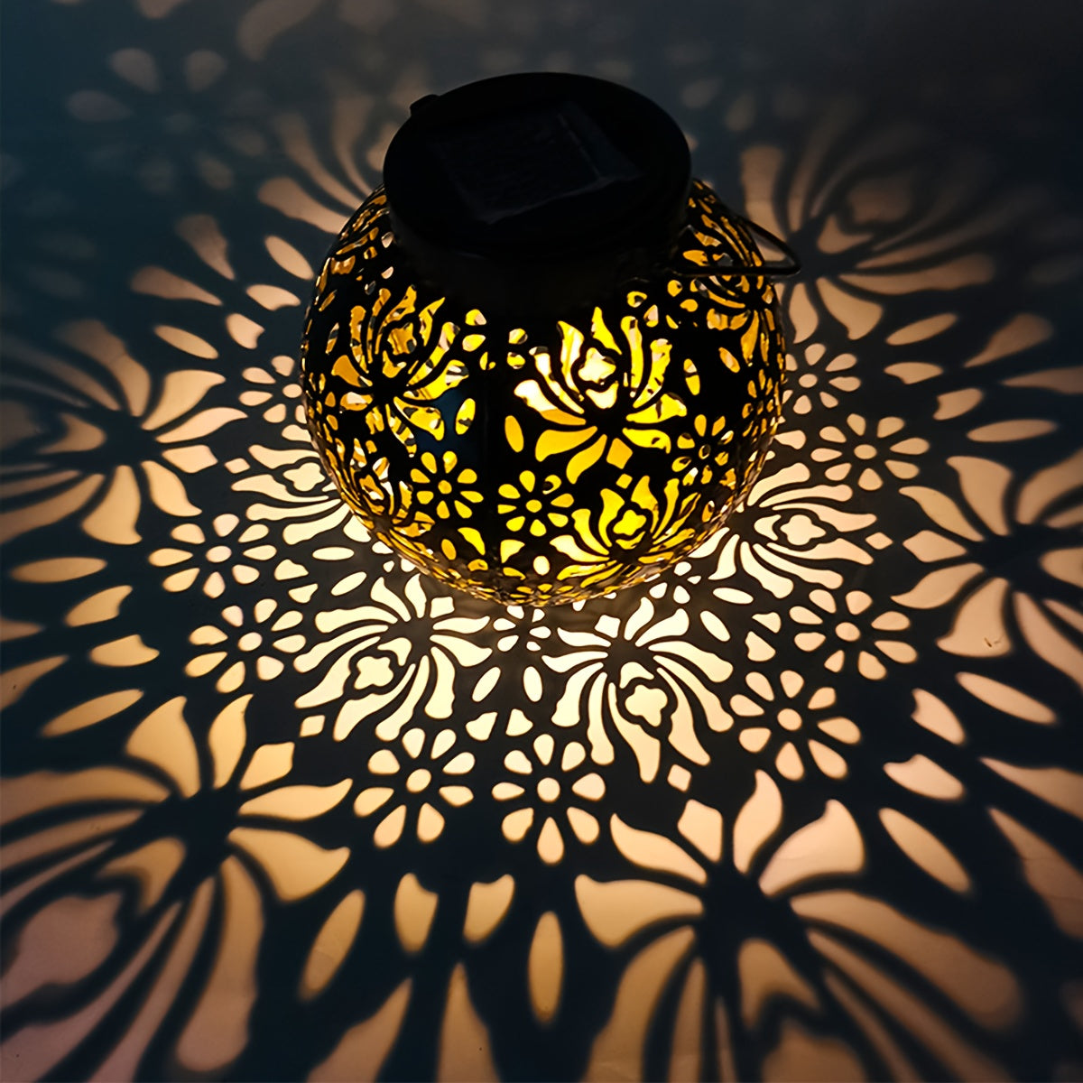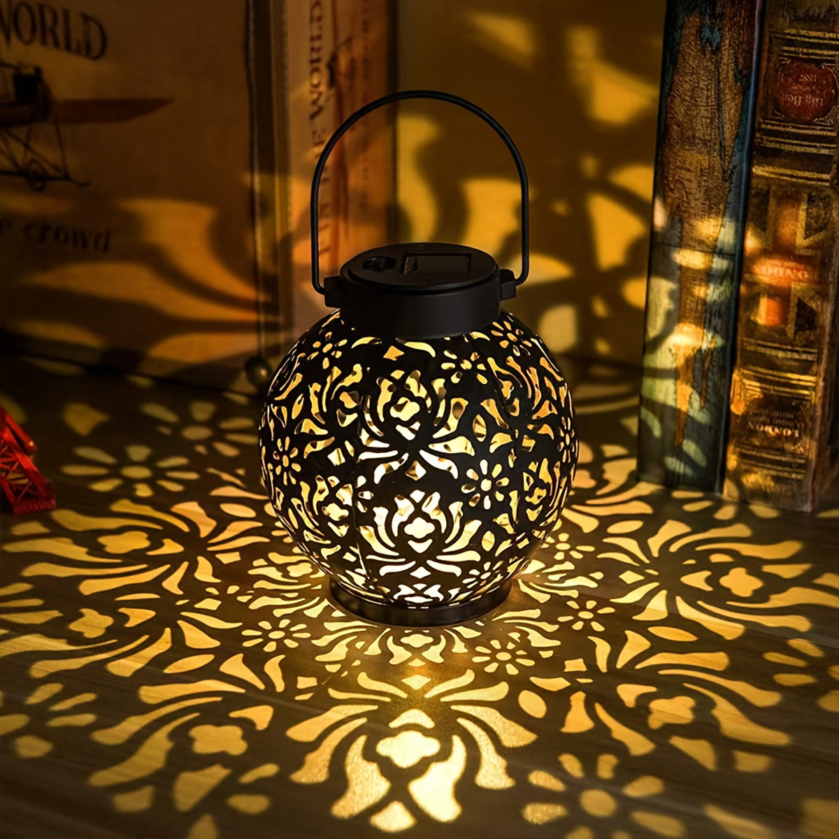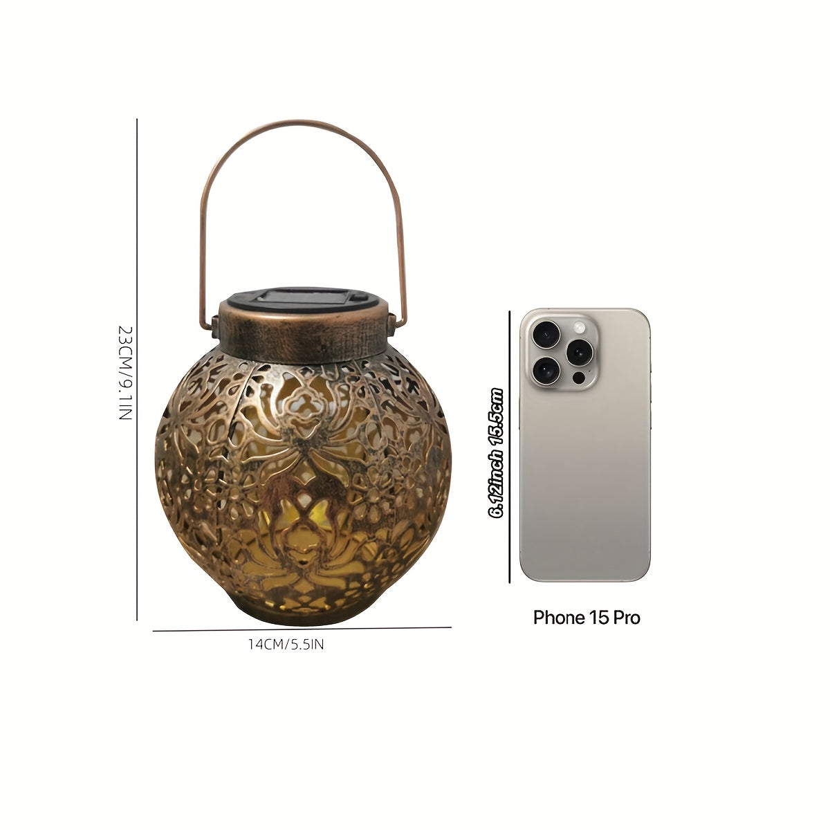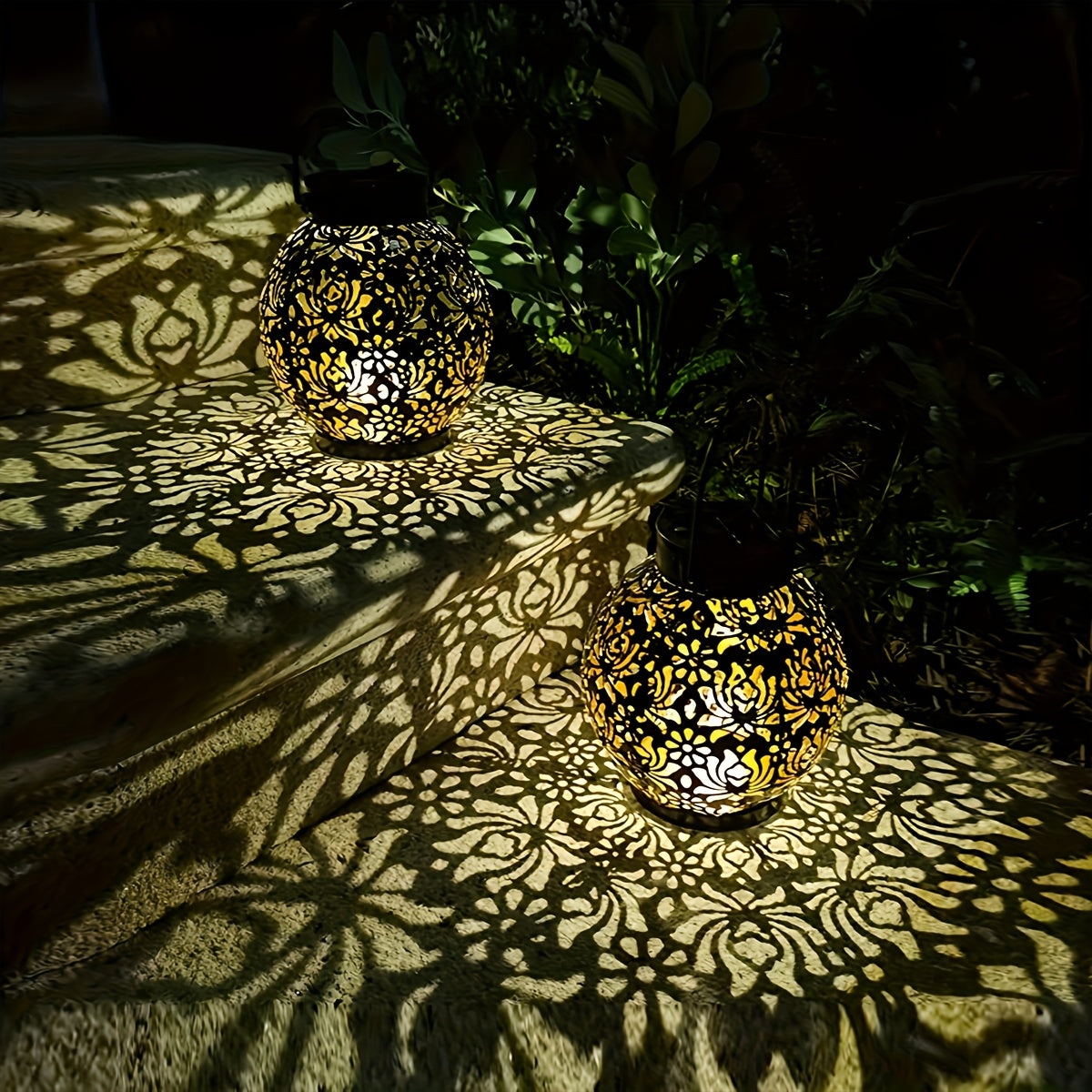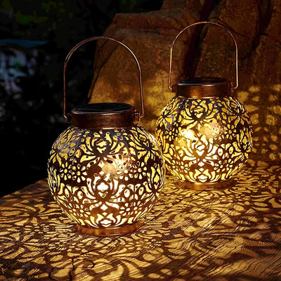 2 Stück Outdoor-Solarhängelampe, Dekolicht mit Griff für den Schreibtisch, Marokkanische LED-Laterne aus Metall, Solarlicht für Garten, Terrasse, Rasen und Hinterhof