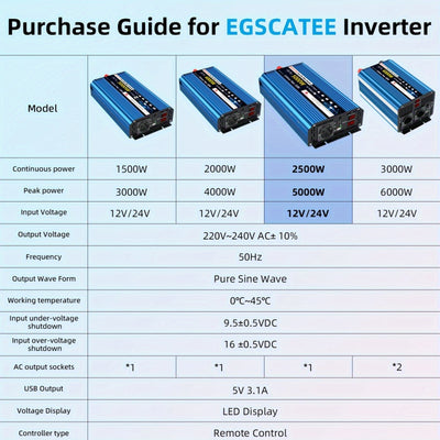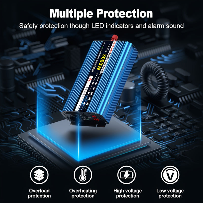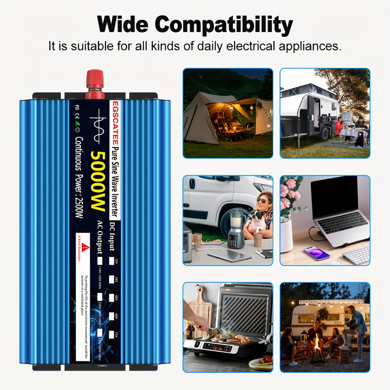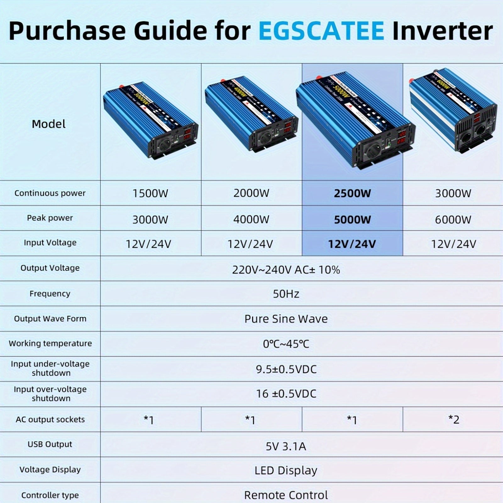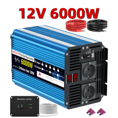 3000W 4000W 5000W 6000W DC12V 24V auf 220V Reiner Sinus Wechselrichter Konverter mit EU Steckdose und LCD Fernbedienung für Auto, Wohnmobil und Solarpanel, Ohne Batterie