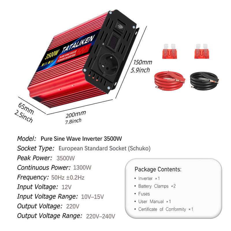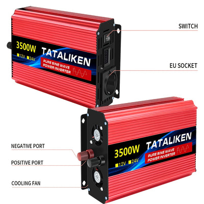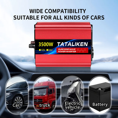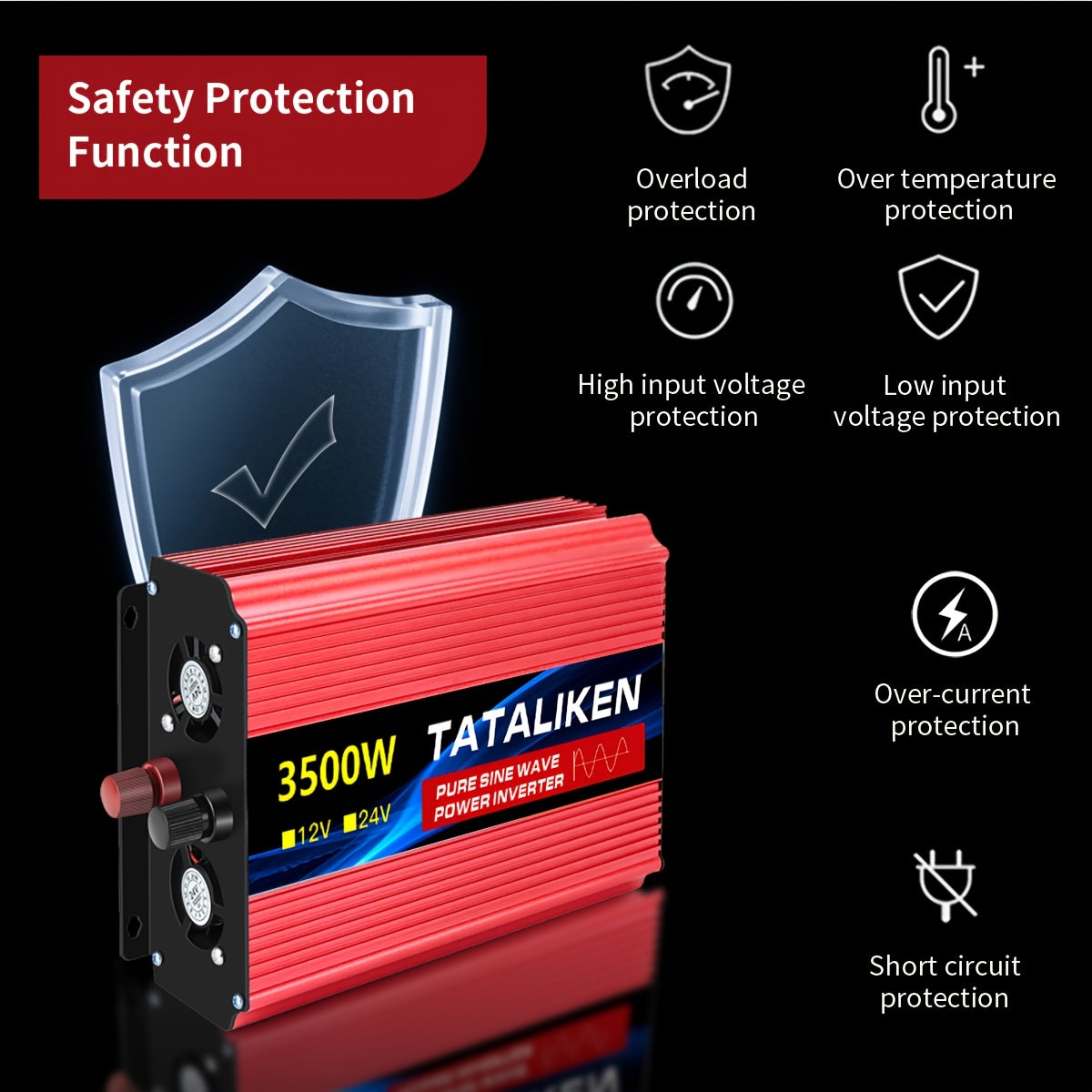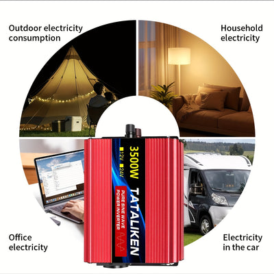 3500W Spitzenreiner Sinuswellen-Leistungswandler - Ultraschweigender Hochleistungs-DC12V zu AC220V Auto- & Heimstromumformer mit Mehrfachschutz für Camping, Reisen, Fahrzeuge, Haushaltsgebrauch, Autostromversorgung | Kompakter Umformer |