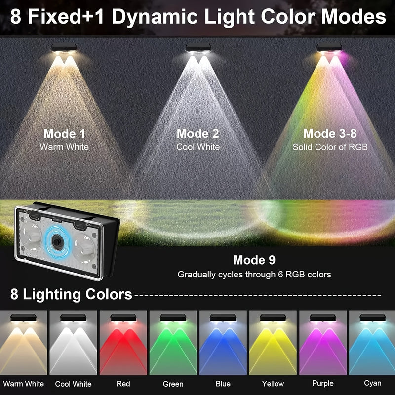 4/ 2er-Pack Outdoor Solarleuchten, 9 Beleuchtungsmodi, Solar-Wandleuchten für Garten, Terrasse, Decke, Stufen und Zäune