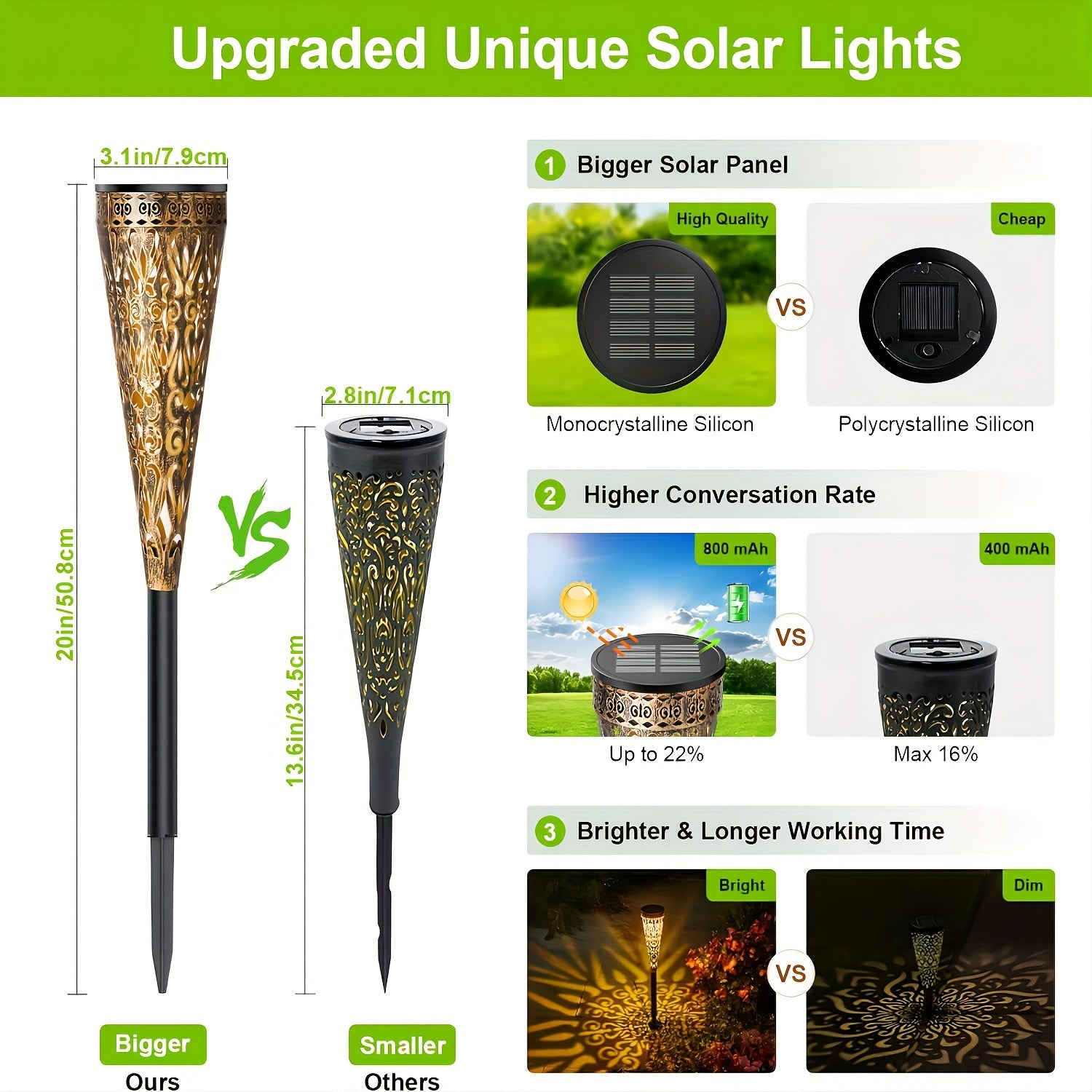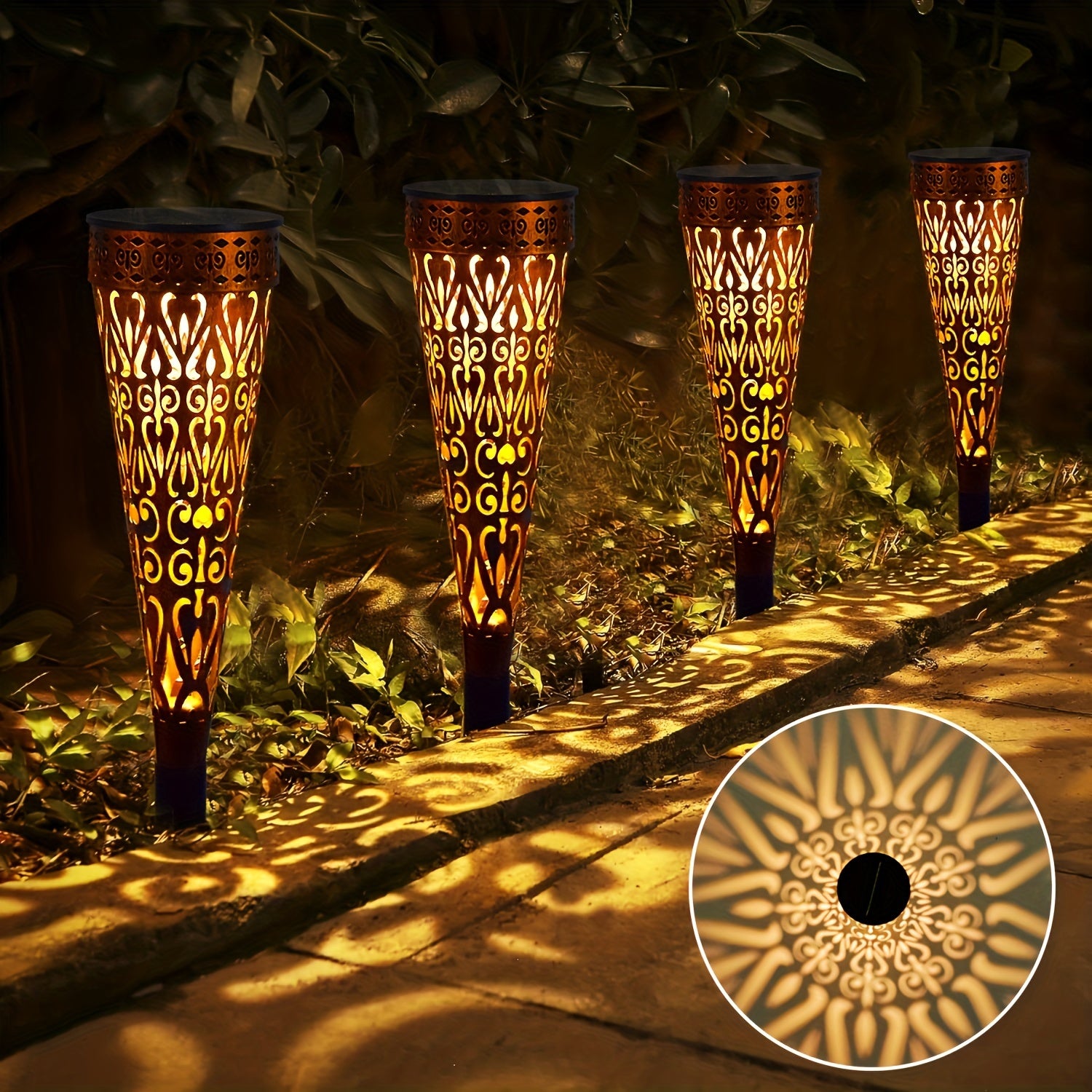 4er-Pack Metall-LED-Solarleuchten, IPX5 Wasserdichte Solarlampen für Garten-Dekoration außenbezüglich zur Beleuchtung von Wegen, Balkon und Terrasse