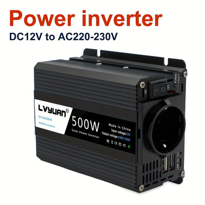 500W Auto Power Inverter DC 12V zu AC 230V AC Converter mit Euro AC Steckdose und Dual USB Auto Ladegerät für Auto Home Laptops, ohne Batterie