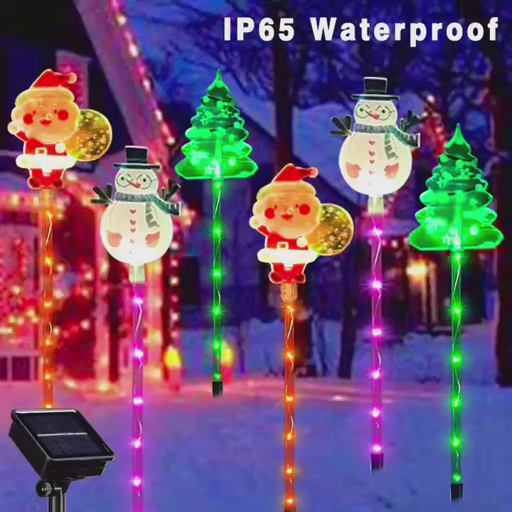 6er-Set Solarbetriebene Weihnachts-Gartenstake-Lichter - Santa, Schneemann & Baumdesigns mit 8 Beleuchtungsmodi, Langlebige Kunststoff-Außendekoration für Rasen, Hof, Winterspektakel, Solare Weihnachtspyramiden