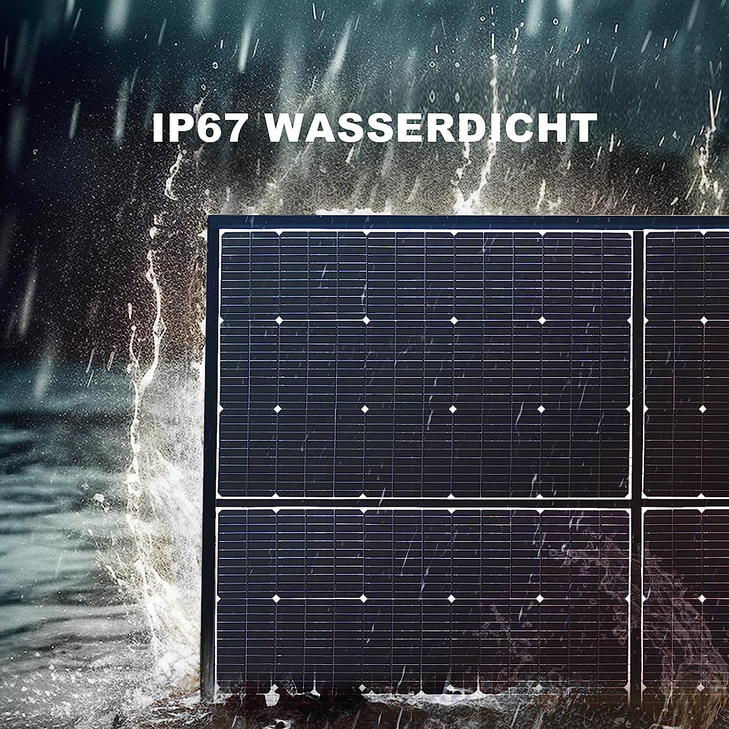 - [ IP67 wasserdichte und mehr 15 Jahre Lebensdauer ] ALLPOWERS SP039 600W Solarpanel hält auch extremen Wetterbedingungen wie Frost oder Hitze stand. Besteht aus mehreren Lagen flexiblem EVA und robusten Glasfasern für mehr Haltbarkeit und Mobilität. Es ist außerdem IP67 geschützt und schützt vor Kratzern, Staub, Wasserspritzern, Starkregen oder kurzzeitigem Eintauchen in Wasser. Bei ordnungsgemäßer Wartung kann eine Lebensdauer von mehr als 15 Jahre erreicht werden.