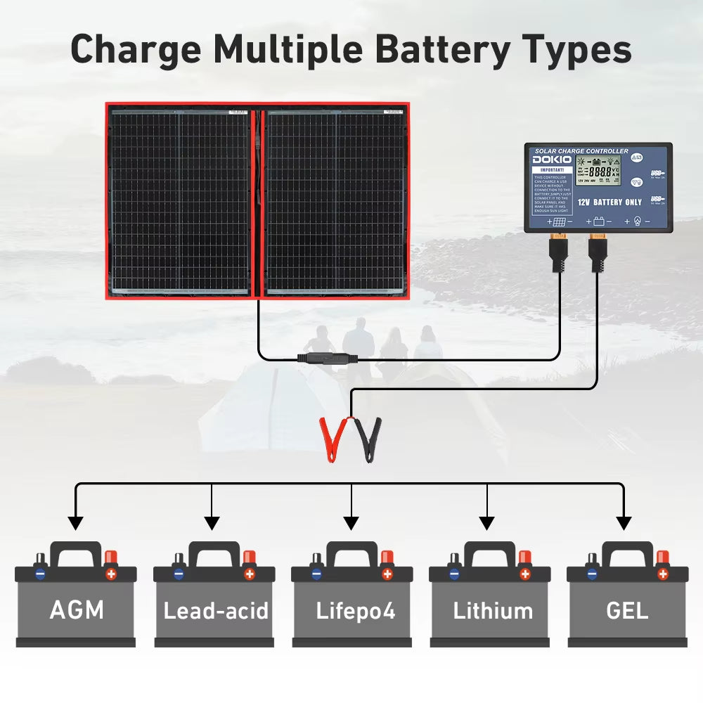 Dokio 18V 100/160/200/300 W tragbares faltbares Solarpanel mit 12V-Controller zum Aufladen der Batterie, geeignet für Camp
