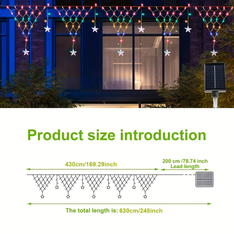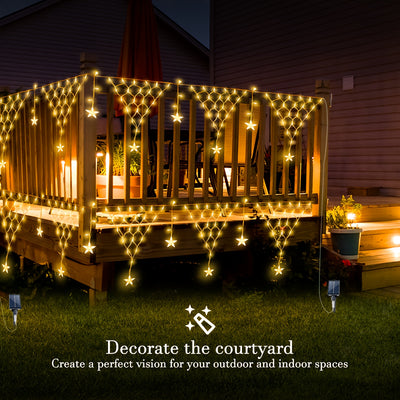 Solar-Dreieck-Gitterlicht, 8 Modi, solarbetriebenes LED-Außendekorations-Licht in verschiedenen Farben – ideal für Garten-, Dachterrassenbeleuchtung sowie Geburtstagsfeiern Festlichkeiten, Solarlichtstreifen,Solar-Lichterkette