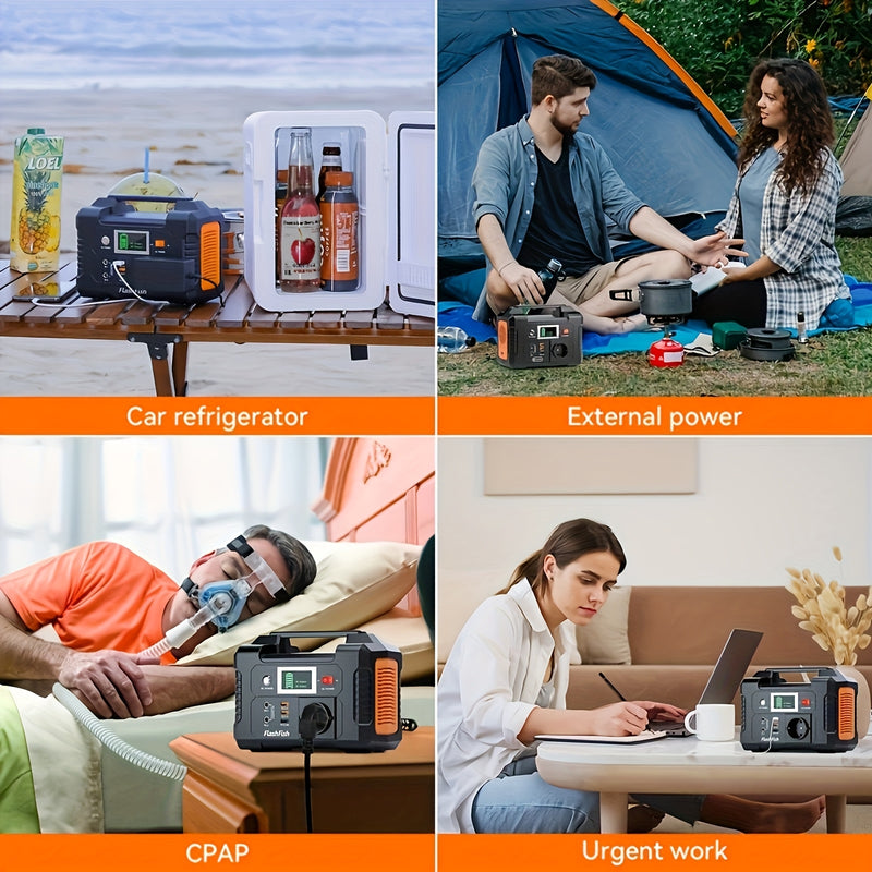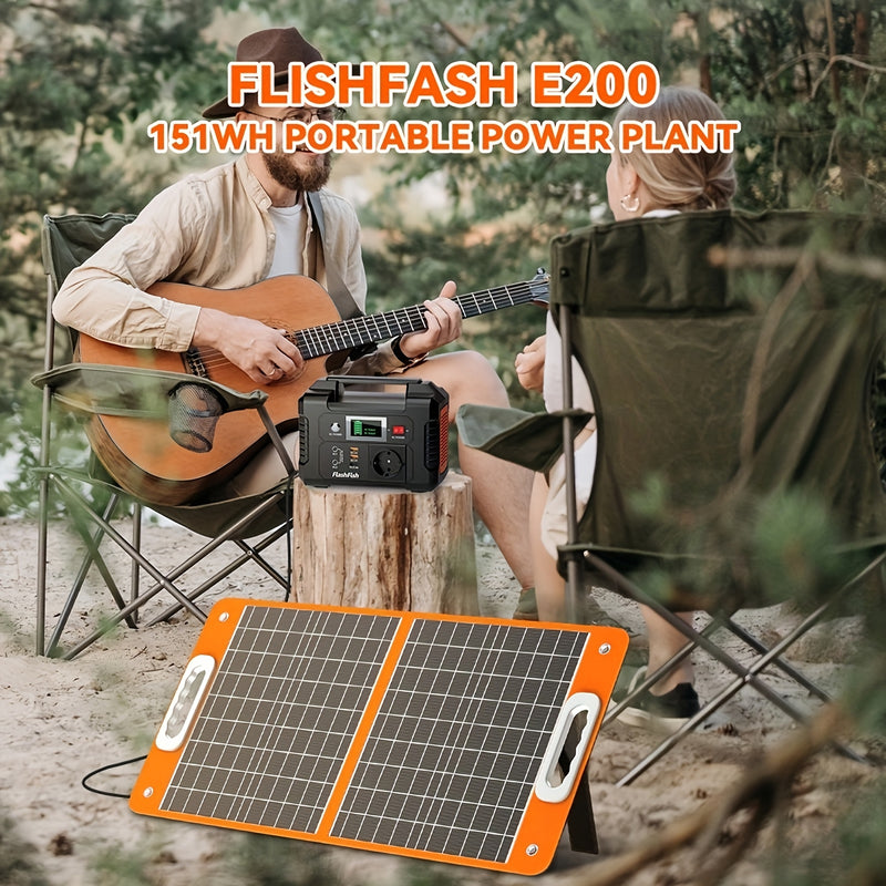 Flashfish Tragbare Powerstation mit Solarpanel, 200W Solarenergie-Powerbank-Set, 40800mAh tragbare Powerstation mit 60W Solarladegerät, Notstrombatterie mit AC-Anschlüssen, USB/DC-Anschlüssen und LCD-Display