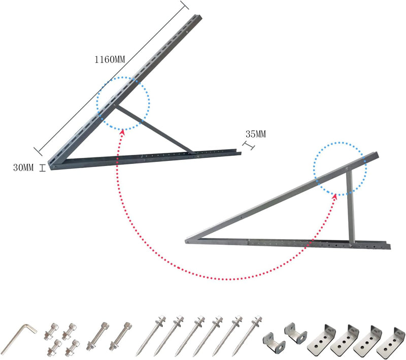 m4solar M03 Schwer aus Stahl für 1 Solarmodul (100W-600W), 0-90° Verstellbar Halterung ,PV Aufständerung Balkonkraftwerk Halterung Solarpanel Flachdach, Wand, Wohnmobil,Boot