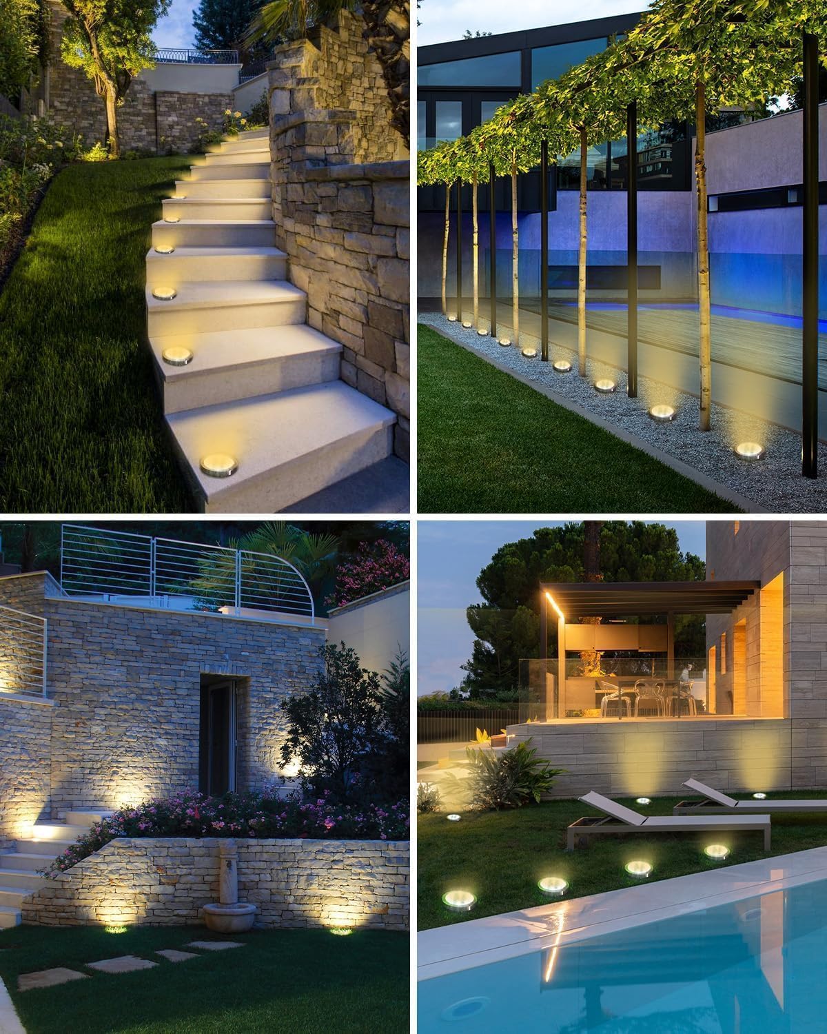 Solar Bodenleuchten Aussen, 8/16 Stück 8 LED Solarlampen für Außen Garten Wetterfest, Solarleuchten Gartenbeleuchtung für Boden Weg Rasen Gehweg Kaltweiss