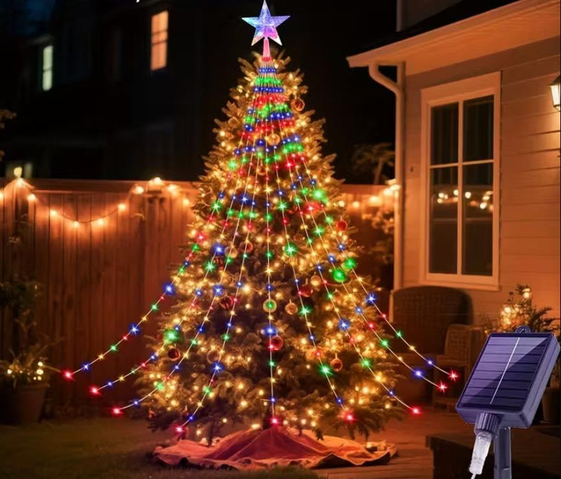Solar Christbaumbeleuchtung mit Sterne, 2M-3M 200-300LEDs Tannenbaum Lichterketten, Fernbedienung, Wasserdicht Weihnachtsbaum Lichterketten mit 8 Modi für Weihnachtsbaum, Innen, Außen Dekor