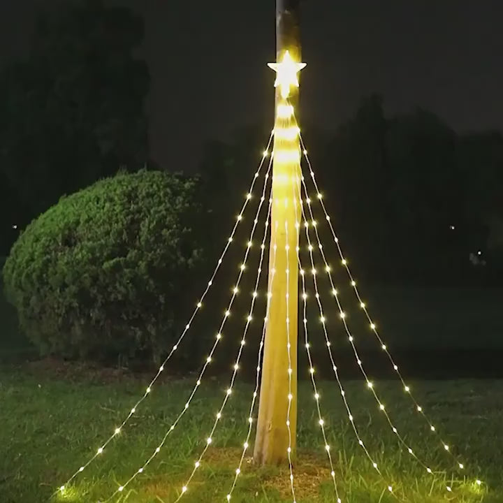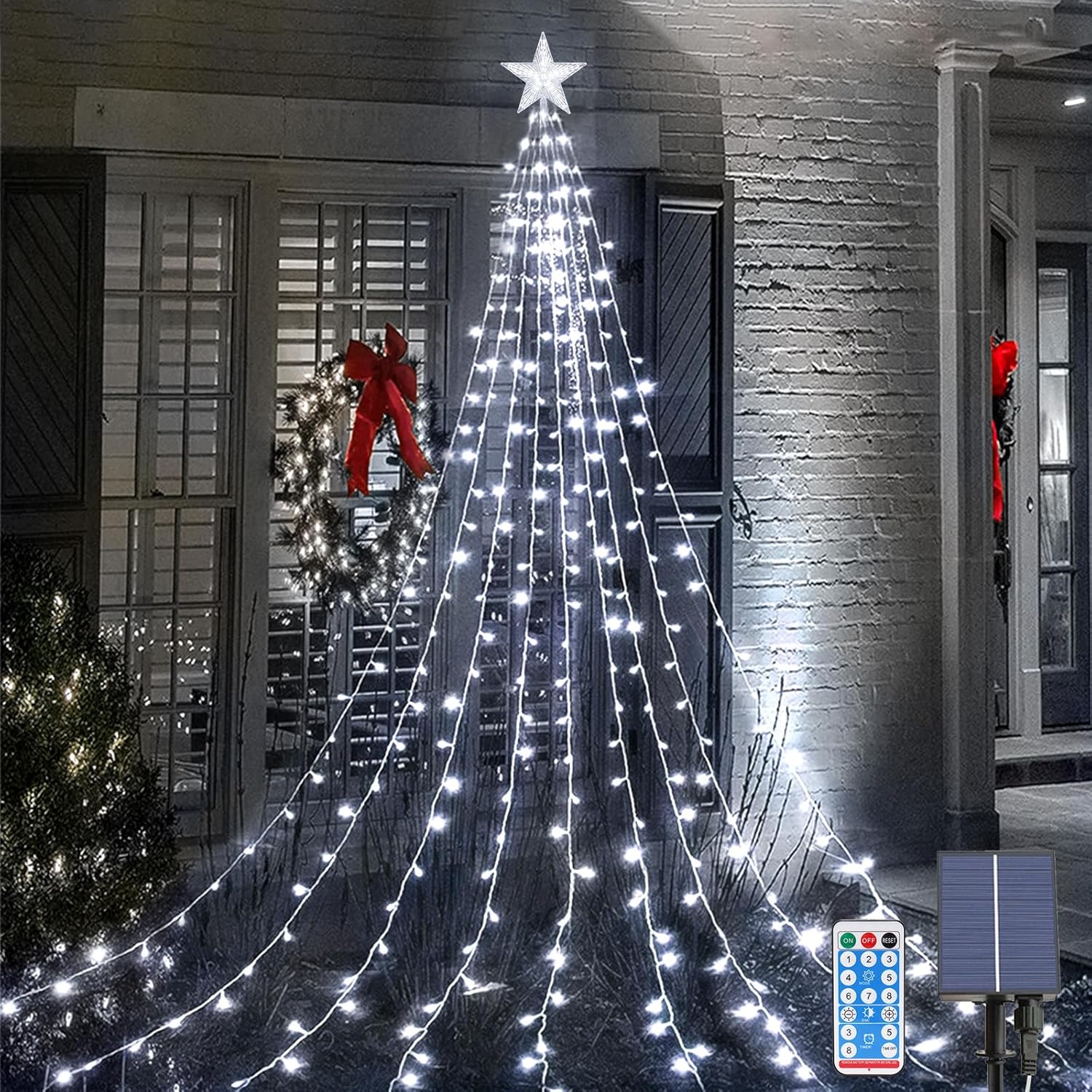 - 【8 Beleuchtungsmodi & Fernbedienung】: Unsere wasserfallbaumlichter sind in 8 beleuchtungsmodi erhältlich dein leben. Sie können auch die fernbedienung verwenden, um ein- und auszuschalten, die helligkeit anzupassen und lichtmodi auszuwählen. unsere lichtschnur kann auch durch fernbedienung zeitlich festgelegt werden.