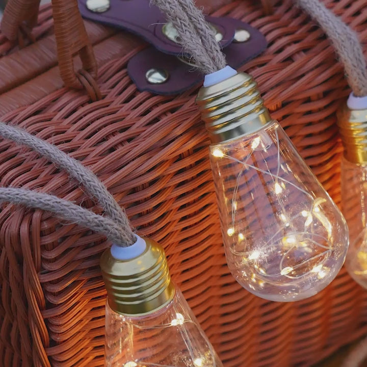 Solar-Lichterkette für draußen, 10/15/25 Glühbirnen Hängeleuchte mit Hanfseil, Lichtsensor Ein-Aus-Funktion, 8 Modi transparente Gartenlichterketten geeignet für Hof, Zaun, Dachüberstand, Terrasse, Hochzeitsdeko Weihnachtsgeschenke