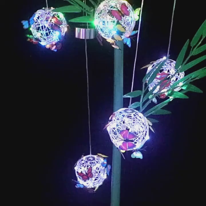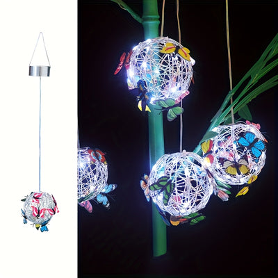 Solar-Powered Butterfly Ball Light - LED-Gartenlampe mit 600mAh Nickel-Batterie, farbenfroher Schmetterlings- und Blumen-Design, Solar-Ladun