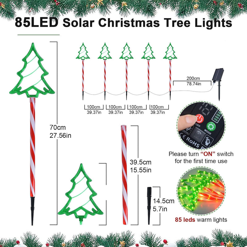 Solar Weihnachtsbeleuchtung Aussen, 5 Stück 85 LED Weihnachtsbaum Solarlampen Weihnachtsdeko, 8 Modi Solar Weihnachts Lichter Aussen, Wasserdicht Solarleuchten Deko für Garten Rasen Hof