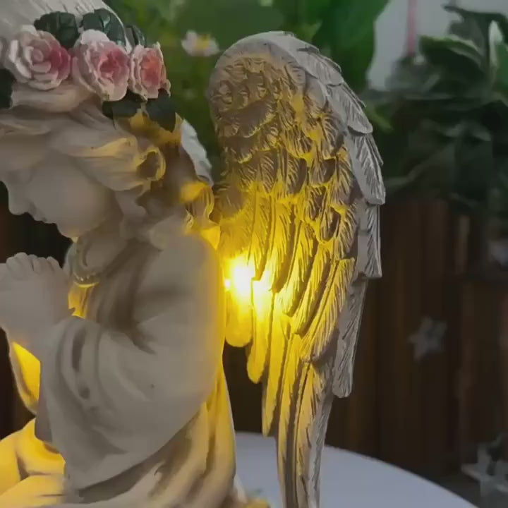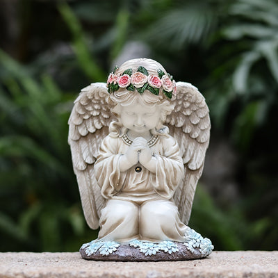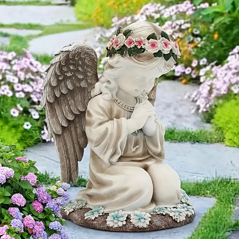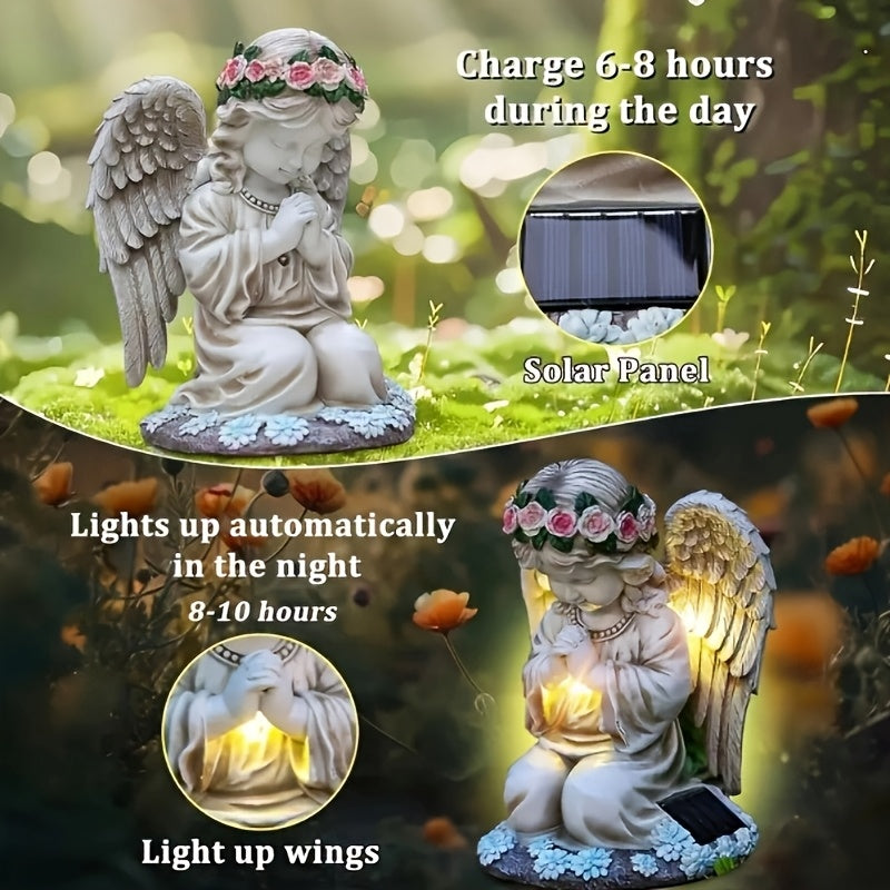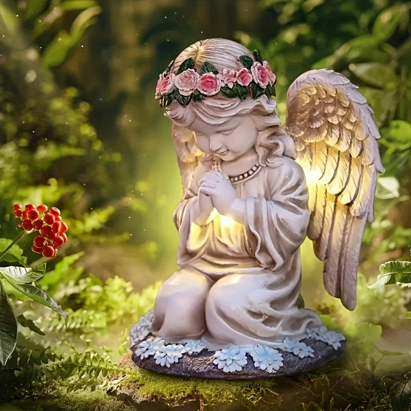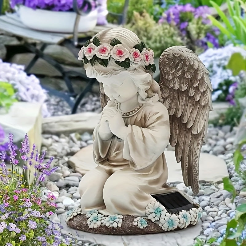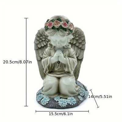 Solarbetriebene Harzfigur eines Betenden Engels mit Beleuchtung - Außengartendekoration für Zuhause & Hof, mit Rosa Krone & Blauen Akzenten, 600mAh Nickel-Batterie, Freistehend, Solar-Gartendekorationen, Ideal für Weihnachten, Perfekt für Thanksgiving