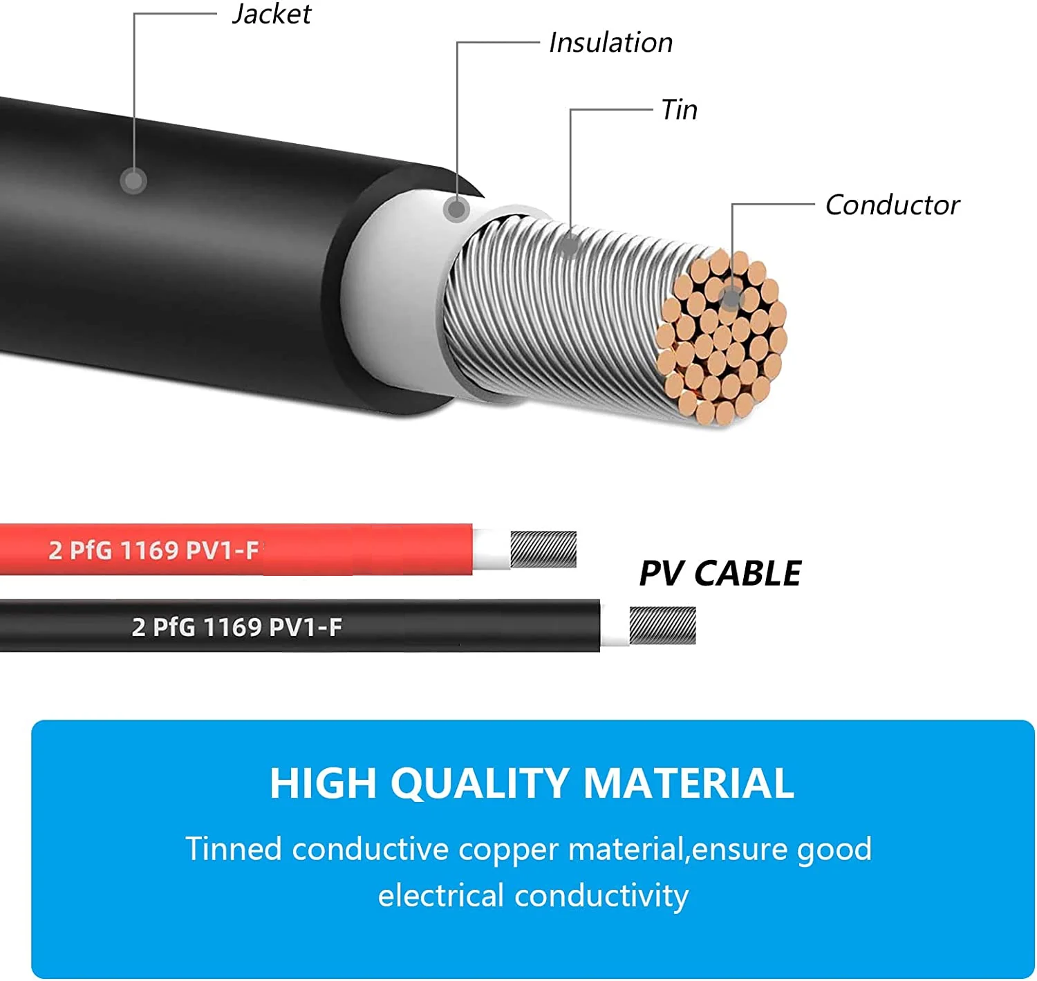 Zufriedenstellender Service:Wir bieten einen freundlichen Kundendienst. Wenn Sie während des Gebrauchs Fragen haben, wenden Sie sich bitte umgehend an uns, Solarkabel TUV, CE, CCC, SAA, VDE-Zertifikat, 25 Jahre Nutzungsdauer.
