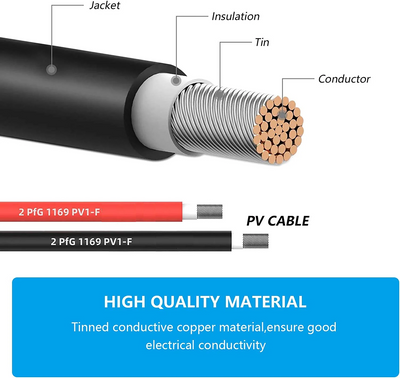 Stecker: with solar connectors can be used directly, no need to install cables and plugs yourself, no need to buy additional plugs. Outsourcing-Isolierung hat eine ausgezeichnete Anti-Aging- und Anti-Ultraviolett-Hochtemperatur-, Verschleiß- und Korrosionsbeständigkeit,Solarkabel haben eine Lebensdauer von: 25 Jahren.