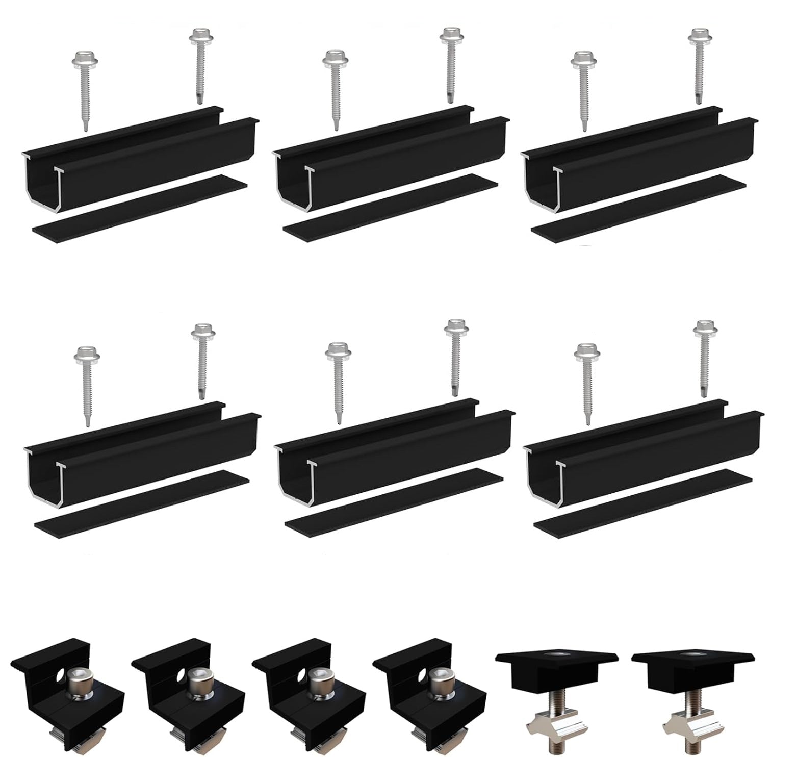Für 3-Solarpanel benötigen Sie 8x Schiene 4x Endklemme 4x Mittelklemme
