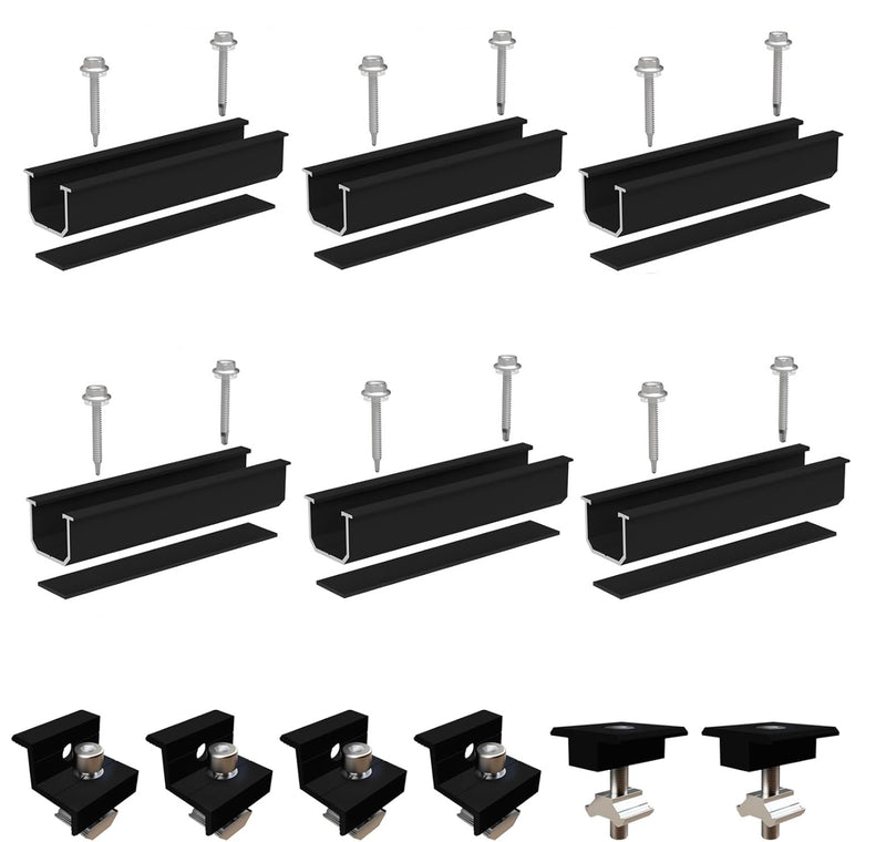 Für 6-Solarpanel benötigen Sie 14x Schiene 4x Endklemme 10x Mittelklemme
