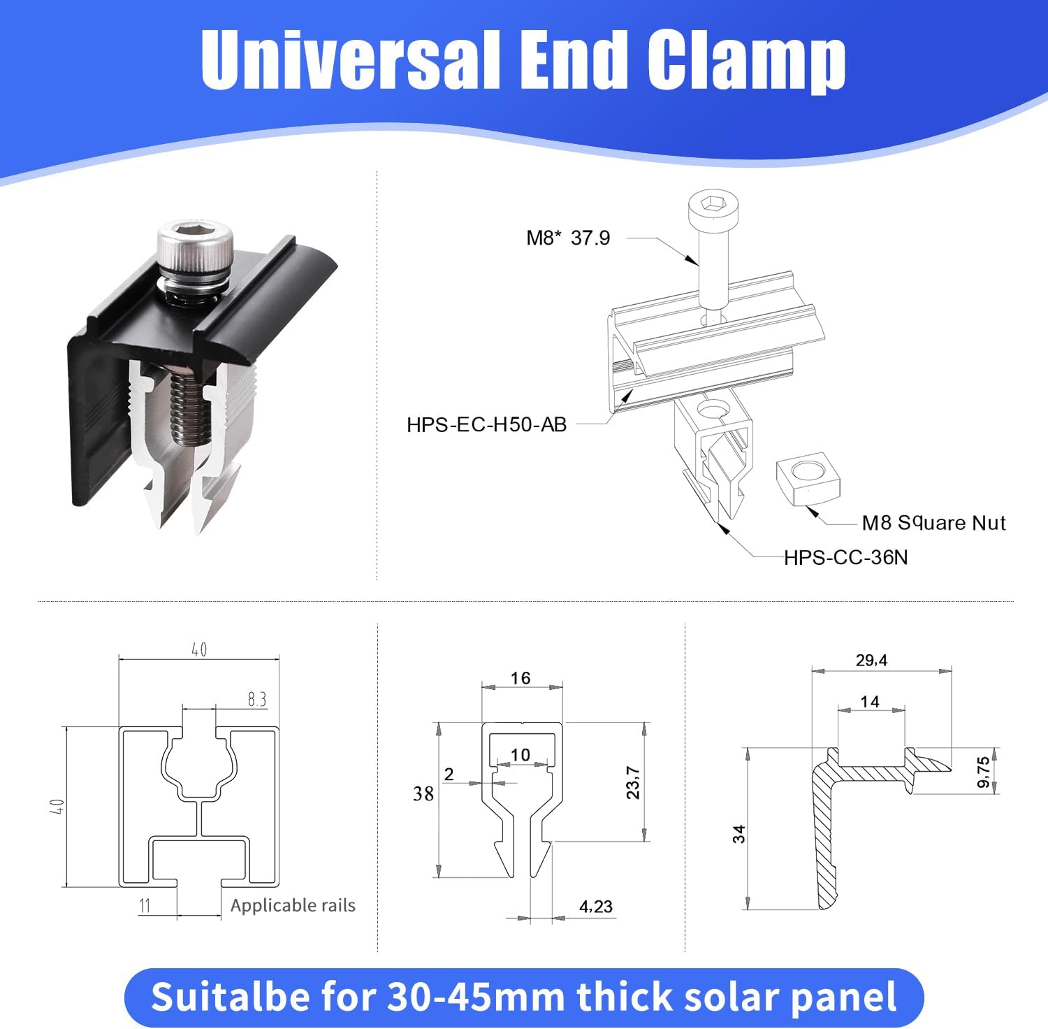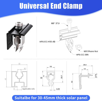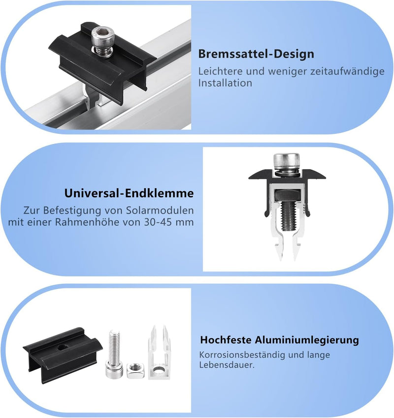 8 /20/48/100 pcs Solarmodul Randklemmen Endklemmen-Set Mby08sh