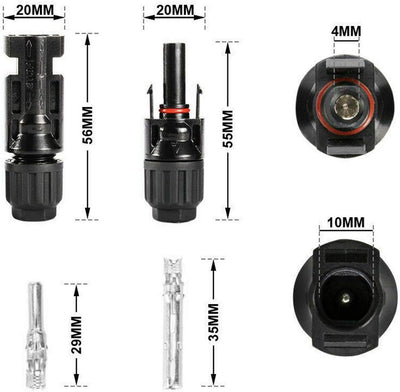 【Hohe Kompatibilität】★ Unsere Solarpanel stecker sind kompatibel mit verschiedenen Photovoltaik-Kabeln von 2,5/4/6 mm²(14/12/10 AWG). Mit UL94-V0 Flammenhemmung, einem Betriebstemperaturbereich von -40°C bis +105°C und der Schutzklasse DC II.