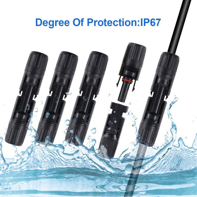 【IP67 Wasserdichtigkeit】★ Die steckverbinder für Solaranlagen sind IP67 wasserdicht und mit isolierten Gummidichtungen ausgestattet, um eine effektive, wasserdichte und staubdichte Verbindung sicherzustellen. Dies gewährleistet sichere elektrische Anschlüsse, selbst unter widrigen Bedingungen.