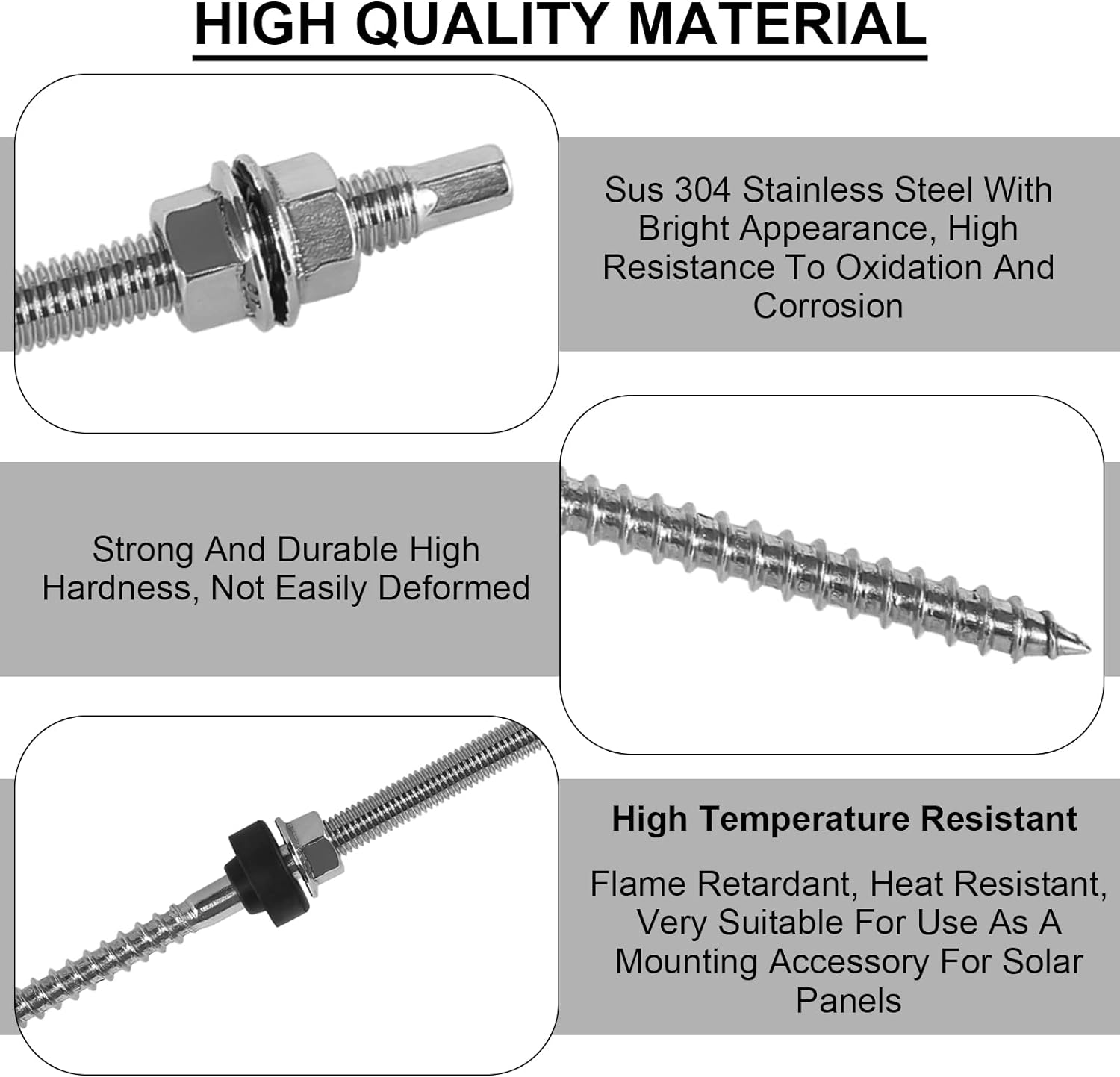 Stockschraube aus Edelstahl M10 x 200 mm, M10 x 250 mm M10 x 300 mm mit Adapterblech
