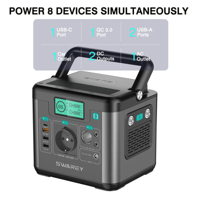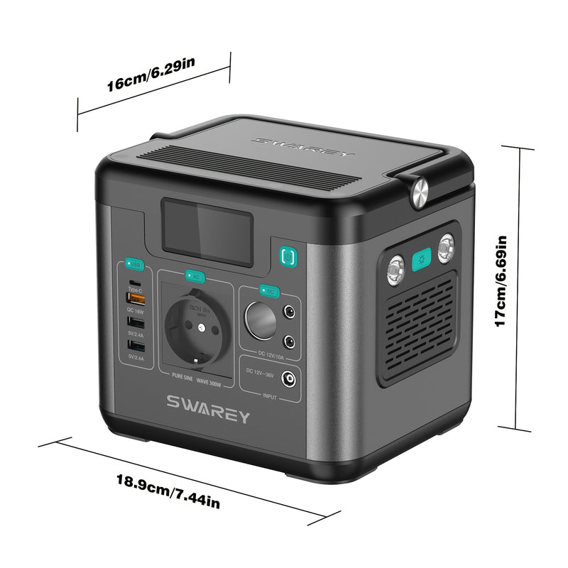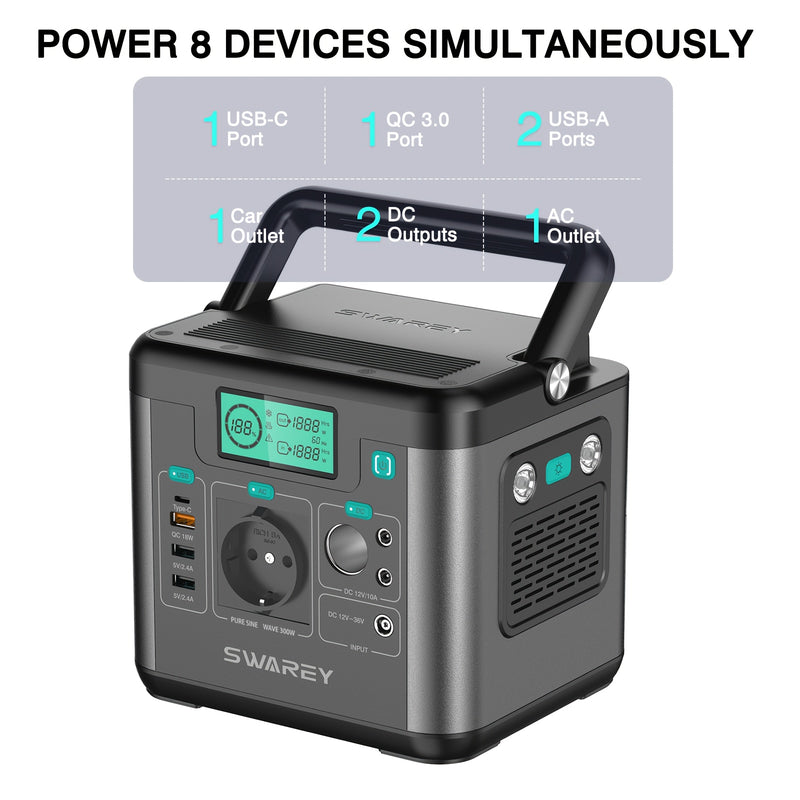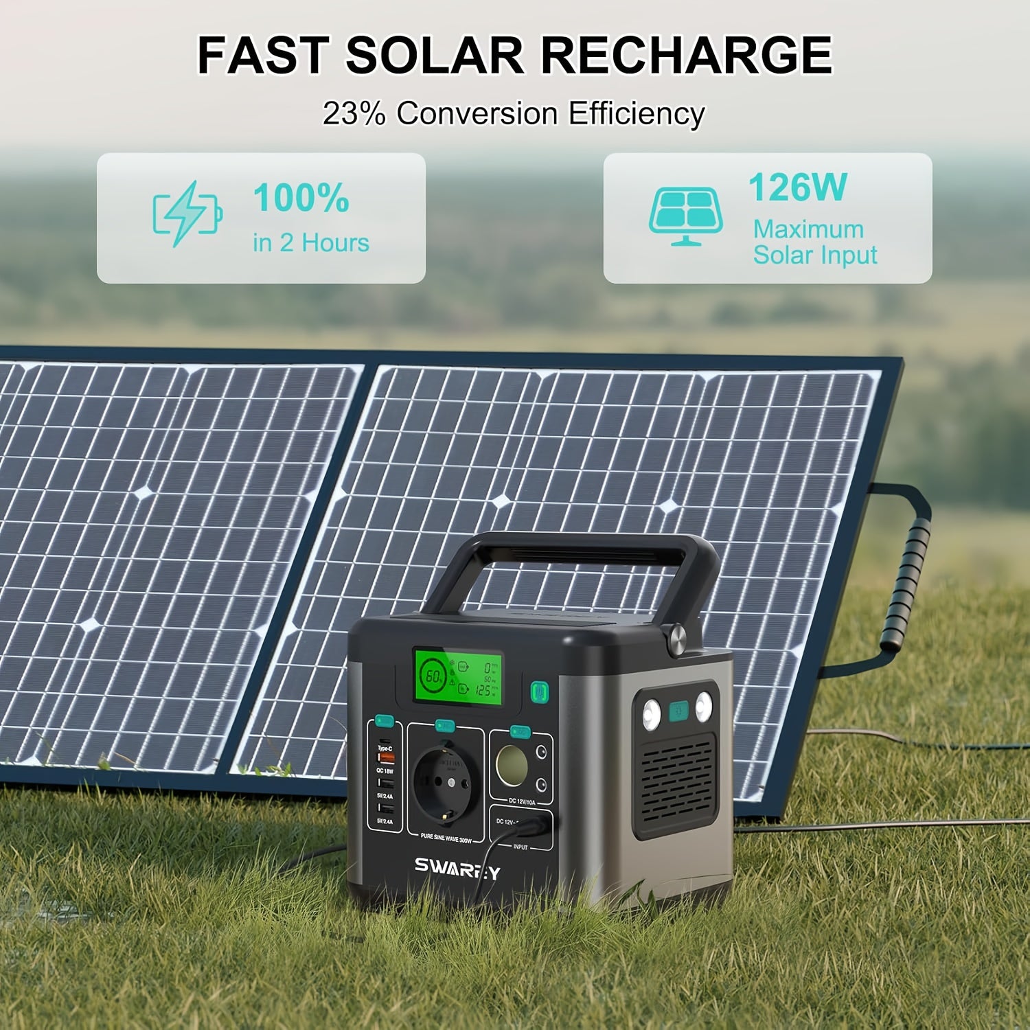 Swarey 300W Powerstation mit 100W Solarmodul, Powerbank mit AC-Steckdose, 222 Wh tragbare externe Batteriepackung, PD 65W Schnellladegerät für Laptops, Geschäftsreisen, Camping, Notfall bei Stromausfall, Laptop-Kamera