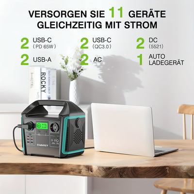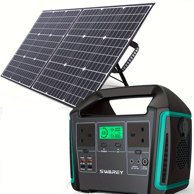 SWAREY Tragbare Powerstation 1000W mit 100W Solarpanel, 725.76Wh Solar-Generator Batterie-Backup 2 X 1000 W AC-Ausgang, 2 X 65 W USB-C-Anschluss, Power-Generator-Batterie für Camping, Reisen, Angeln, Wohnmobil und Smartphone-Tablet