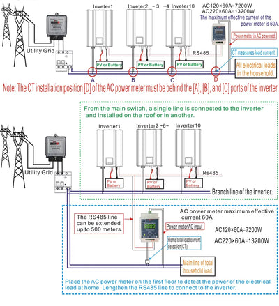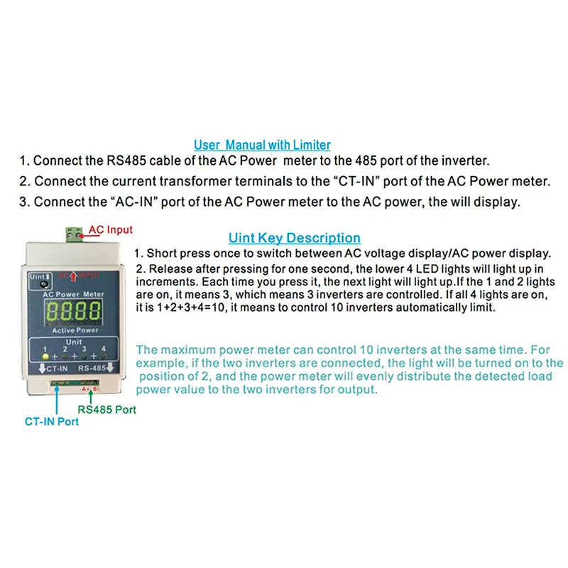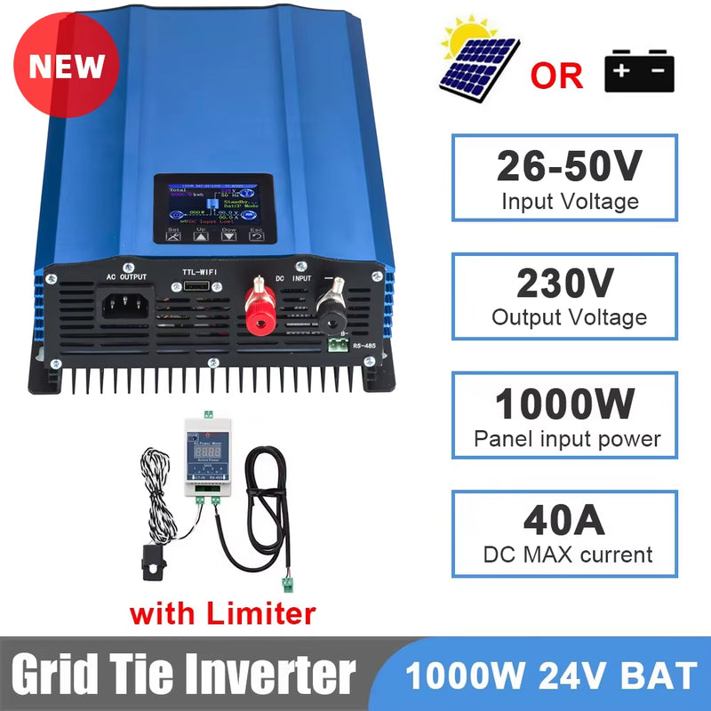 Y&H Grid Tie Inverter 1,2 kW 1 kW mit Limiter, reiner Sinuswellen-Solarwechselrichter für Solarmodule/Batterieentlademodus 48 V/24 V